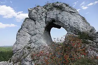 - ↑ Na podstawie tablicy informacyjnej zamontowanej przy skale.