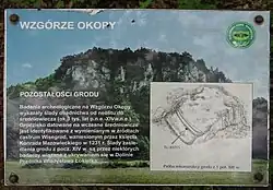 - ↑ Na podstawie tablicy informacyjnej zamontowanej przy pozostałościach grodziska