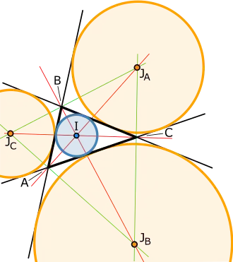 Paweł Rudnicki, Okręgi dopisane trójkąta prostokątnego, Wrocławski Portal Matematyczny, matematyka.wroc.pl, 15 września 2018 [dostęp 2024-10-07].- Eric W. Weisstein, Excircles, [w:] MathWorld, Wolfram Research (ang.). [dostęp 2024-10-07].