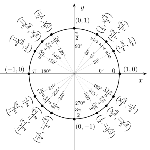 Szymon Charzyński, Okrąg jednostkowy i definicje funkcji trygonometrycznych, kanał Khan Academy na YouTube, 12 listopada 2013 [dostęp 2024-10-24]. - ↑ Eric W. Weisstein, Unit Circle, [w:] MathWorld, Wolfram Research (ang.). [dostęp 2024-10-24].