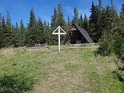 Tuż poniżej szczytu, na który prowadzi nieoznakowana ścieżka, stoi kaplica Matki Bożej Opiekunki Turystów oraz maszt telekomunikacyjny. Kaplicę, nawiązującą wyglądem do szałasu pasterskiego, zbudowano potajemnie w maju 1987 roku. Przez długi czas prowadząca do niej ścieżka znana była tylko wtajemniczonym. Obecnie we wnętrzu kaplicy umieszczono epitafia upamiętniające zmarłych ludzi gór. Co roku w pierwszą niedzielę października w kaplicy odbywa się msza dla uczestników zlotu turystycznego krakowskiego oddziału PTTK[6].