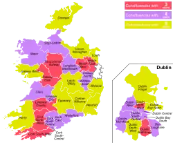 - ↑ TUARASCÁIL AN CHOIMISIÚIN UM THOGHLAIGH, 2017 / CONSTITUENCY COMMISSION REPORT 2017 [online] [dostęp 2021-09-27].