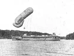 Pierwszą osobą, która zasugerowała użycie balonu na uwięzi z pokładu okrętu, był w 1803 angielski kontradmirał Henry Knowles. W 1818 Charles Rogier zaprojektował okręt wyposażony w balony swobodne uzbrojone w bomby lotnicze, a w 1846 w czasie amerykańsko-meksykańskiej powstał plan użycia balonów na uwięzi do zbombardowania portu Veracruz.