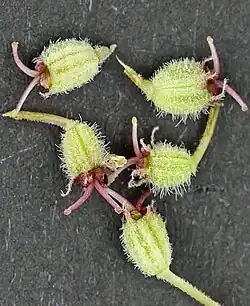 - Jajowate, owłosione rozłupnie o długości 3–4 mm i szerokości 1,5–2,5 mm, pokryte tępymi żebrami[6].
