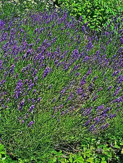 Lawenda (łac. Lavandula L.) to rodzaj roślin z rodziny jasnotowatych, który obejmuje ponad 40 gatunków[4] pochodzących z obszaru śródziemnomorskiego. Gatunek Lavandula angustifolia (lawenda wąskolistna) jest olejkodajną krzewinką, uprawianą na dużą skalę np. w Prowansji, w dystrykcie Traszigang w Bhutanie (gdzie jest obok ryżu jednym z dwóch głównych produktów rolnych) lub na chorwackiej wyspie Hvar, nazywanej „wyspą lawendową”. Może być uprawiana również na wyższych szerokościach geograficznych. W Polsce obszary jej potencjalnej uprawy prawie pokrywają się z obszarami uprawy rzepaku ozimego. Wskazana jest południowa wystawa pola, osłonięcie od wiatrów, gleba przepuszczalna o dużej zawartości wapnia, na podłożu wapiennym, np. rędzina, less, gleby próchnicze. Gleba powinna być głęboko przeorana i racjonalnie nawożona (nie jest zalecane nawożenie obornikiem)[5].