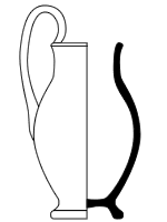 Po lewej: Waza Chigi, ok. 640 p.n.e. (Villa Giulia); po prawej: rysunek profilu i przekroju przykładowej olpe