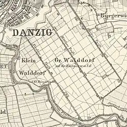 Dawne nazwy: Klein Walddorf (1780), Bürgerwalde[2].