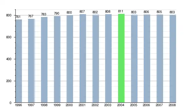 Według danych z dnia 31 grudnia 2012, wieś zamieszkiwały 823 osoby, w tym 411 kobiet i 412 mężczyzn[6].