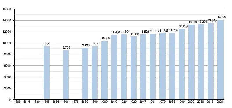 - Źródła: NIS, od 1806 do 1981= według spisu; od 1990 liczba ludności w dniu 1 stycznia
