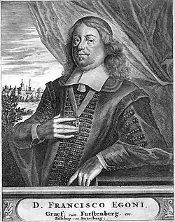 - Franz Egon von Fürstenberg-Heiligenberg 1664-1682 – mianowany przez cesarza i uznany przez papieża; biskup Strasburga[74]