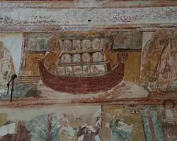Sklepienie pokrywa cykl obrazów o tematyce starotestamentowej, z ksiąg Rodzaju i Wyjścia. Sceny, uszeregowane kolejno, przedziela centralnie fryz.
