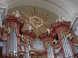 - barokowy prospekt organowy autorstwa Joachima Gottlona Petera,