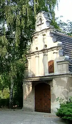 - Kaplica cmentarna (kostnica, albo śmiertelnica) w stylu manierystycznym (I połowa XVII w.) przy kościele św. Mateusza. Wokół kościoła znajdował się cmentarz, który zlikwidowano w II połowie XIX wieku, przenosząc kości zmarłych do podziemi kaplicy. Podobnie była wykończona fasada kościoła, o czym świadczą zachowane pozostałości elewacji świątyni.