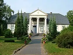- Neoklasycystyczna plebania, położona w parku przy kościele św. Mateusza. Swoim kształtem nawiązuje do szlacheckich dworków: posiada trzykolumnowy portyk oraz dwuspadzisty dach z naczółkami. Budynek wybudowano na miejscu poprzedniej drewnianej plebanii, sięgającej początku XVII wieku.