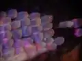 - Opalescencja o połysku srebrzystym zwana jest adularyzacją i występuje w skaleniach potasowych: adularze, ortoklazie, niekiedy w sanidynie, czasami w mikroklinie.