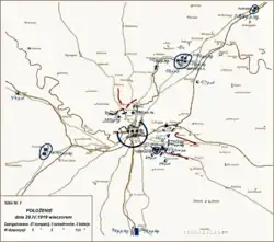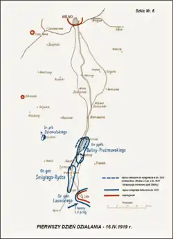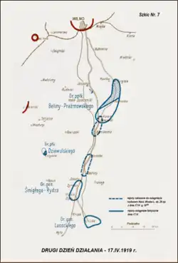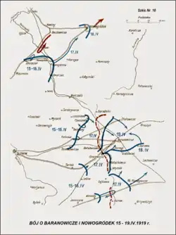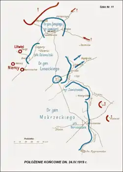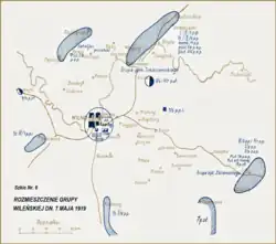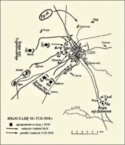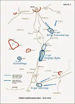 Równocześnie z walkami o Wilno toczył się bój grupy gen. Stefana Mokrzeckiego o Nowogródek i Baranowicze, a grupa gen. Józefa Lasockiego, złożona z części dawnej Grupy Zaniemeńskiej i oddziałów 2 Dywizji Piechoty Legionów, uderzyła na Lidę[49].