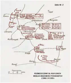 Na odcinku północnym w rejonie Wołkowyska operowała nie w pełni jeszcze zorganizowana Dywizja Litewsko Białoruska (Grupa gen. Iwaszkiewicza). Oddziały dywizji weszły w styczność bojową z sowieckimi awangardami nadciągającymi od strony Wilna, Baranowicz i Pińska. Z tą chwilą powstanie frontu polsko-sowieckiego stało się faktem[6].