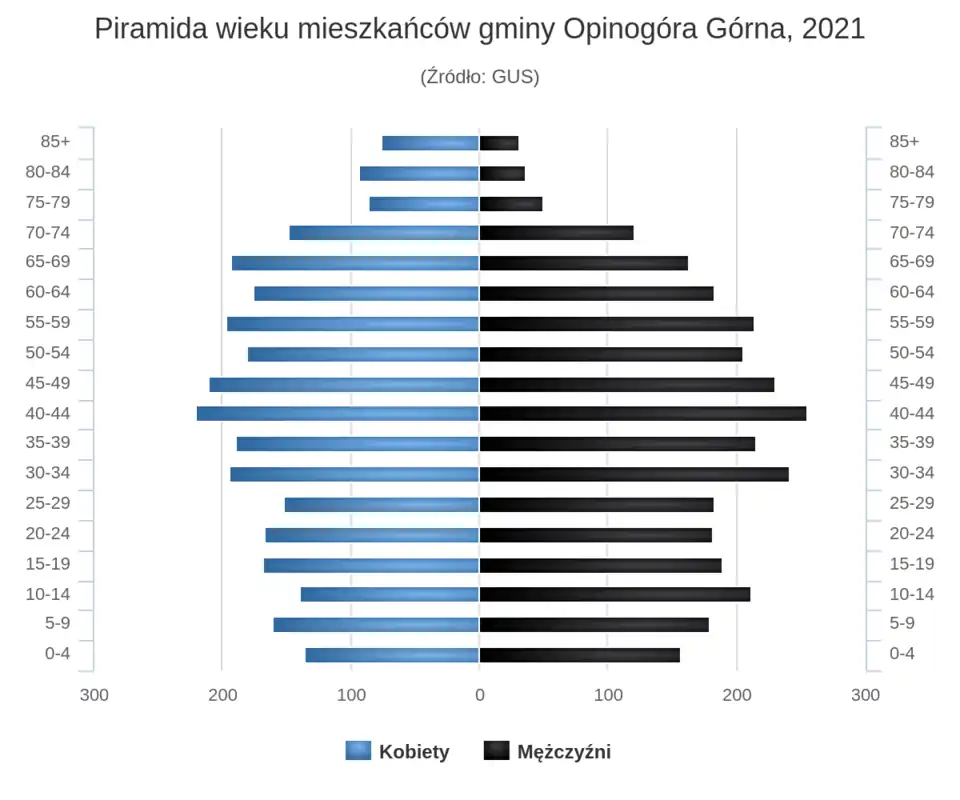 Piramida wieku mieszkańców gminy Opinogóra Górna w 2021 roku[1].
