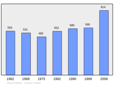 Według danych na rok 1990 gminę zamieszkiwało 585 osób, a gęstość zaludnienia wynosiła 12 osób/km² (wśród 1545 gmin Langwedocji-Roussillon Opoul-Périllos plasuje się na 479. miejscu pod względem liczby ludności, natomiast pod względem powierzchni na miejscu 62.).