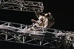 - ↑ Astronaut Demonstrates How A Space Suit Works. [dostęp 2024-05-09].