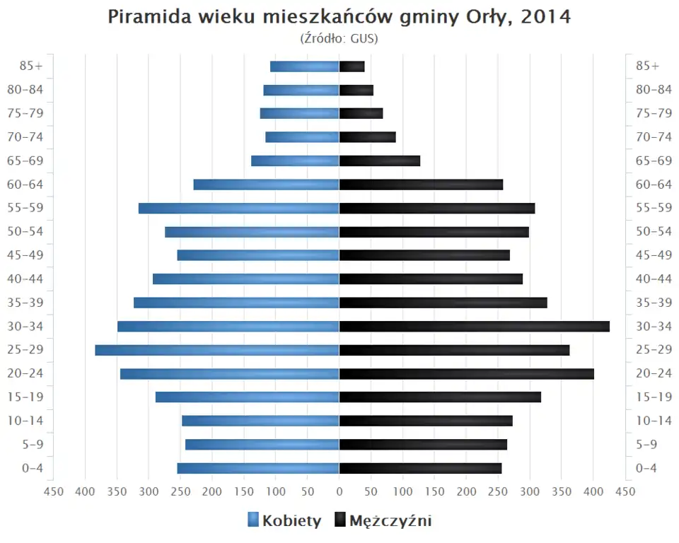 - Piramida wieku mieszkańców gminy Orły w 2014 roku[1].