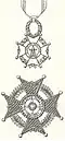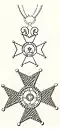 Odznaka Krzyża z Wieńcem Laurowym ma analogiczny kształt jak gwiazda Wielkiego Krzyża, lecz głownie mieczy są pokryte czerwoną emalią. Gwiazda tej klasy jest noszona samodzielnie, bez towarzyszącej oznaki.