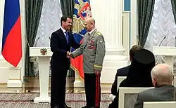 - ↑ Указ Президента Российской Федерации от 7 сентября 2010 г. N 1099 "О мерах по совершенствованию государственной наградной системы Российской Федерации". Rossijskaja Gazieta, 15.09.2010. [dostęp 2020-08-31]. (ros.).