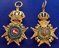 Dewizą orderową było łacińskie motto hanoweskiej dynastii NEC ASPERA TERRENT (nawet przeciwności nie odstraszają). Odznakę orderową wieszano na jasnoniebieskiej wstędze.
