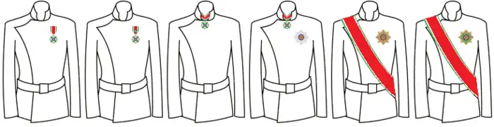- Klasa III: oznaka zawieszona na wstędze noszonej na szyi.