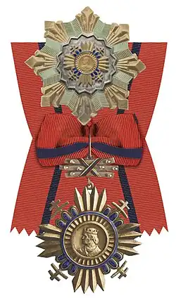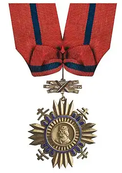 W dniu 4 marca 1942 roku statut orderu został uzupełniony w ten sposób, że dla wojskowych za zasługi na polu walki nadawano orderu uzupełniony mieczami.