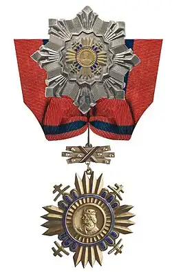 Odznakę orderu została wykonana ze złota w klasach od I do IV i ze srebra dla klasy V.