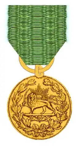 - ↑ Christopher Buyers: Oders & decorations. [w:] The Qajar and Pahlavi Dynasty Orders & Decorations [on-line]. royalark.net. [dostęp 2014-11-02]. (ang.).