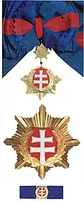- I Klasa (I. trieda) – odznaka orderowa na szarfie (wielka wstęga) i gwiazda orderowa