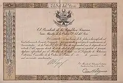 Order został ustanowiony 8 października 1821 z rozkazu generała Joségo de San Martína, po zdobyciu Limy, dla specjalnie zasłużonych w walkach o uzyskanie niepodległości Peru. Po czterech latach zaprzestano jego nadawania. Order przywrócono dekretem prezydenta Peru Augusta Bernardina Leguíi y Salcedo 14 kwietnia 1921 z okazji setnej rocznicy proklamowania niepodległości.