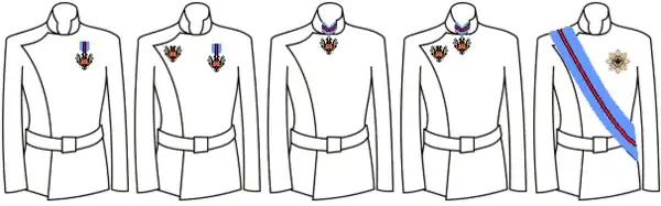 | Kawaler (Kalors), Oficer (Oficer), Komandor (Komendator), Wielki Oficer (Oficer i Madh), Krzyż Wielki (Kalors i Madh) | ||||