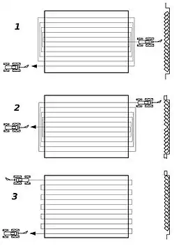 - w rozorywkę (w rozgon) – polegającą na dokładaniu skib do brzegów składu; kończy się na środku składu, gdzie powstaje bruzda,