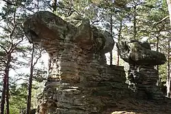 Piaskowcowe skały położone na południowej krawędzi Szczytnika na wysokości 560 m n.p.m. na południowy wschód od Zamku Leśna nad doliną potoku Bystrzyca Dusznicka[1].
