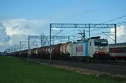 ![]() Lokomotywa Traxx w malowaniu przewoźnika Lotos Kolej (przed zmianą nazwy) | |
