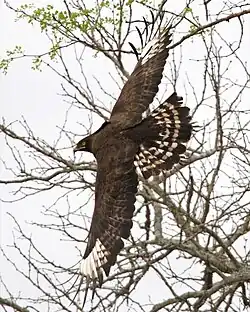 - 1 2 Species account: Long-crested Eagle Lophaetus occipitalis. [w:] Global Raptor Information Network [on-line]. The Peregrine Fund. [dostęp 2020-11-08]. (ang.).