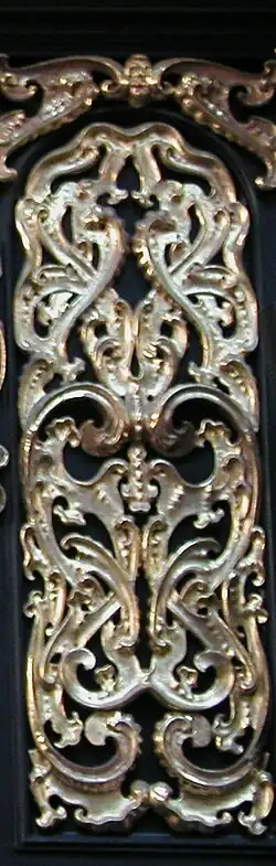 Ornament może przybierać formy muszlowe, wolutowe, chrząstkowe i małżowinowe, które zdają się składać z materii ciągliwej i napęczniałej, jakby zwierzęcej[3] albo motywy bardziej suche, mniej przypominające ciasto, a raczej pojedyncze elementy C-kształtne. W ornamencie mogą pojawiać się motywy maski, ludzkie twarze, głowy aniołków.