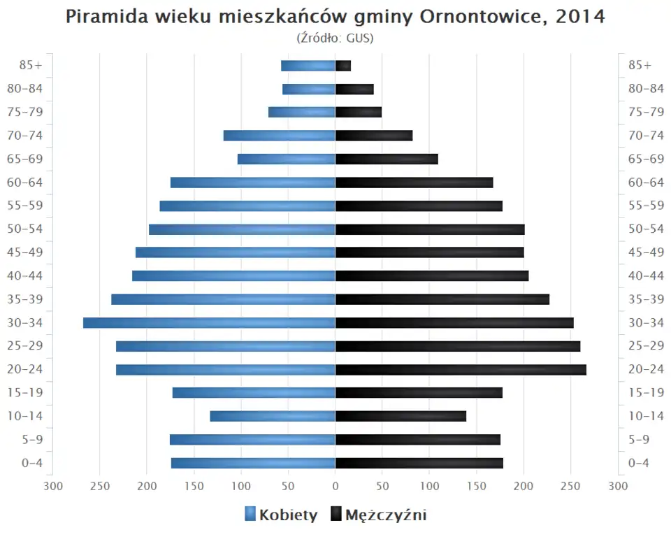 - Piramida wieku mieszkańców gminy Ornontowice w 2014 roku[1].