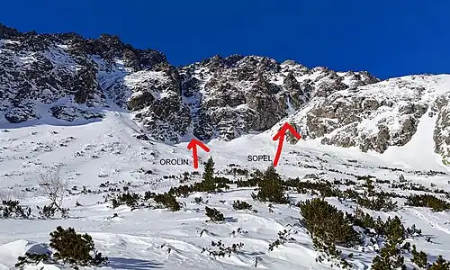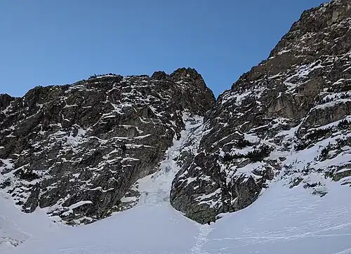 Żlebem Stolarczyka schodzą lawiny, istnieje więc zagrożenie lawinowe[3].