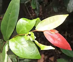 - Naprzemianległe, pojedyncze, całobrzegie, siedzące. Żyłki często pokryte są przezroczystymi gruczołami[6].