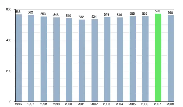 Według danych z dnia 31 grudnia 2012 roku, wieś zamieszkiwały 553 osoby, w tym 269 kobiet i 284 mężczyzn[6].