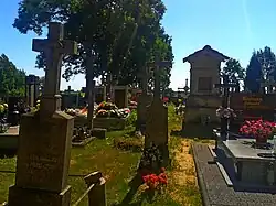 - Cmentarz przy kościele[7], dawniej unicki, następnie prawosławny, obecnie rzymskokatolicki, został założony w XVIII w. Rozplanowany na rzucie prostokąta z aleją główną od kościoła i podziałem na trzy nierówne prostokąty. Teren ogrodzony murem z jedną bramą wejściową, obok kościoła dąb pomnikowy.