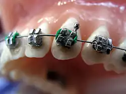 - Aparaty stałe – aparaty ortodontyczne mocowane na określony czas do zębów za pomocą zamków ortodontycznych, do których z kolei przymocowuje się oddziałujące na zęby łuki ortodontyczne. Aparaty stałe mogą być: metalowe (tradycyjne), estetyczne (z zamkami kompozytowymi lub porcelanowymi) lub lingwalne (niewidoczne na zewnątrz, mocowane od strony języka).