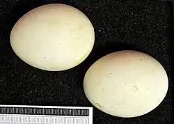 W ciągu roku wyprowadza jeden lęg, składając w maju (w Afryce Południowej od sierpnia do stycznia, najczęściej we wrześniu i październiku[14]) zazwyczaj dwa (czasami jedno lub trzy[15]) białawe, słabo nakrapiane jaja.