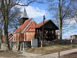 , neogotycki kościół parafialny pw. Matki Boskiej Bolesnej i zabytkowa, wolno stojąca, drewniana dzwonnica. W centrum osiedla znajduje się odnowiony poniemiecki cmentarz z kilkoma płytami nagrobnymi.