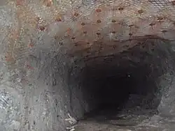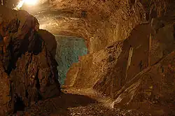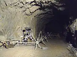 U podnóża góry, obok potoku Kłobia, ślady wyrobisk z lat 50. XX wieku po eksploatacji rud uranu.