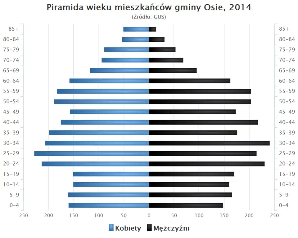 - Piramida wieku mieszkańców gminy Osie w 2014 roku[1].
